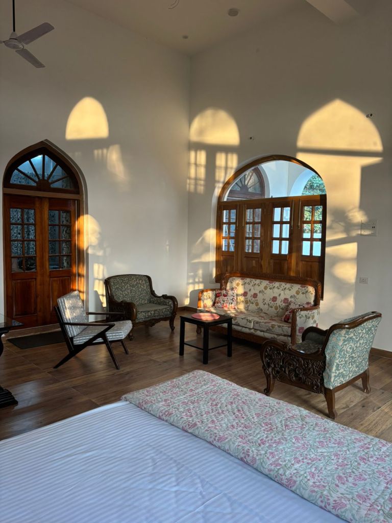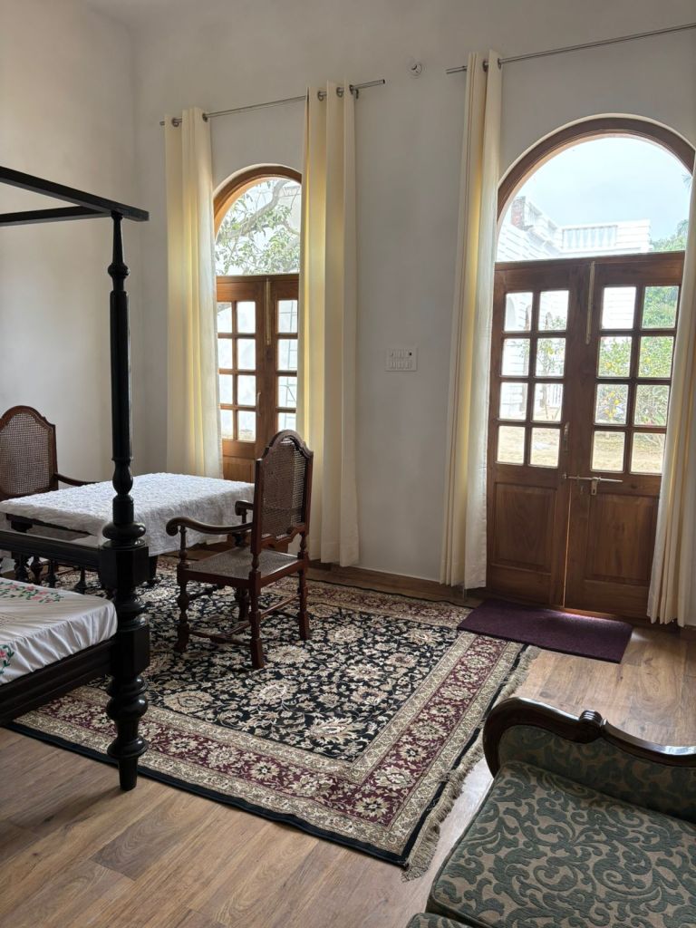 Dudhwa Forest View Resort stands out for its old-world charm and spacious estate-style architecture. The rooms reflect a heritage sensibility, with high ceilings, solid wooden furniture, and large windows that open to garden and forest views. The design feels timeless and calm, offering guests the rare feeling of staying in a historic forest retreat rather than a conventional hotel. Natural light, fresh air, and peaceful surroundings make every room a private sanctuary after a day of exploration.